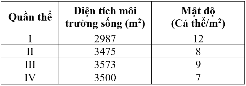 Các quần thể của cùng 1 loài có mật độ và diện tích môi trường sống tương ứng như sau: