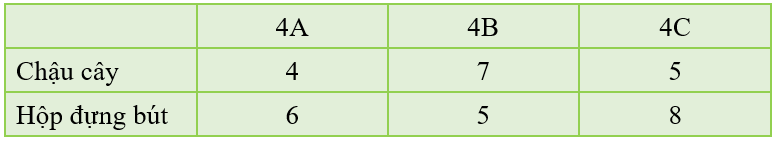 Tổng số chậu cây cả ba lớp làm được là bao nhiêu?