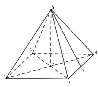 Hình chóp tứ giác đều SABCD có mặt đáy là hình vuông ABCD, mặt bên là tam giác cân, chiều cao hình chóp là SO, trung đoạn là SK.