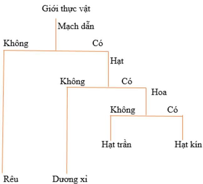 Hãy vẽ sơ đồ khoá lưỡng phân của giới thực vật.