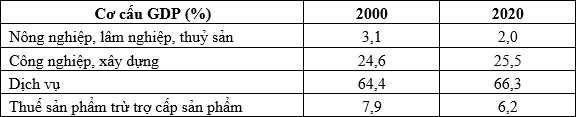 Cơ cấu GDP của Ô-xtrây-li-a năm 2000 và năm 2020