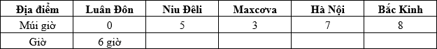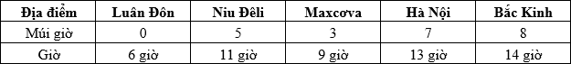Vận dụng kiến thức đã học để tính giờ ở các địa phương rồi điền kết quả vào bảng