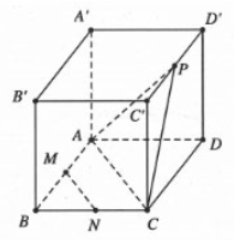 Cho hình lập phương \(ABCD \cdot {A^\prime }{B^\prime }{C^\prime }{D^\prime }\) cạnh \(a\). Gọi M, N, P lần