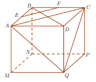 Cho hình hộp ABCD.MNPQ có sáu mặt đều là các hình vuông. Gọi E, F lần lượt là trung điểm của