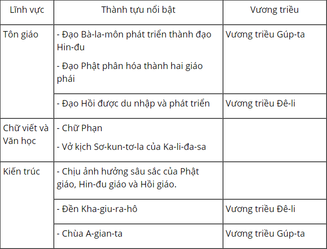 Nêu những thành tựu văn hóa tiêu biểu của Ấn Độ từ thế kỉ IV đến giữa thế kỉ