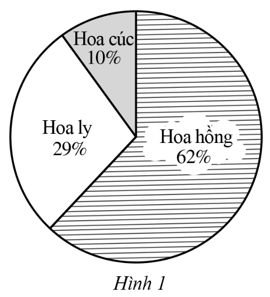 Bạn Nam vẽ biểu đồ hình quạt tròn như Hình 1 để biểu diễn tỉ lệ các loại hoa được