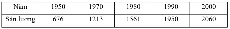 Bảng số liệu sau đây thống kê sản lượng lương thực của thế giới giai đoạn 1950 - 2000