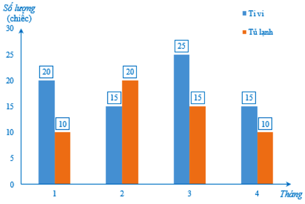 Biểu đồ đoạn thẳng ở Hình 26 biểu diễn số lượng ti vi và tủ lạnh bán được trong tháng