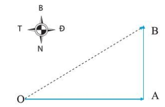 Một ô tô đi 20 km theo hướng đông và sau đó đi 10 km về hướng bắc như hình vẽ. Độ dịch