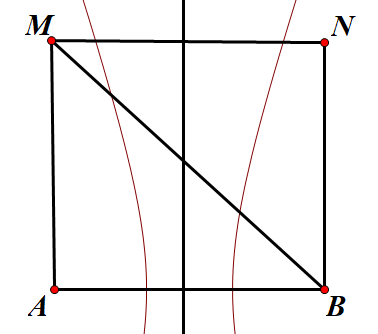 Ở mặt thoáng của một chất lỏng có hai nguồn sóng kết hợp A và B cách nhau 20 cm, dao động theo phương thẳng đứng với phương trình \({u_A} = 2\cos 40\pi t\) và \({u_B} = 2\cos \left( {40\pi t} \right)\) (\({u_A}\) và \({u_B}\) tính bằng mm, t tính bằng s). Biết tốc độ truyền sóng trên mặt chất lỏng là 30 cm/ s. Xét hình vuông AMNB thuộc mặt thoáng chất lỏng. Số điểm dao động với biên độ cực đại trong khoảng BM là