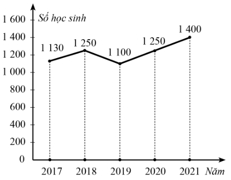 Biểu đồ đoạn thẳng dưới đây biểu diễn số học sinh của một trường trung học cơ sở trong giai đoạn từ năm 2017 đến năm 2021.