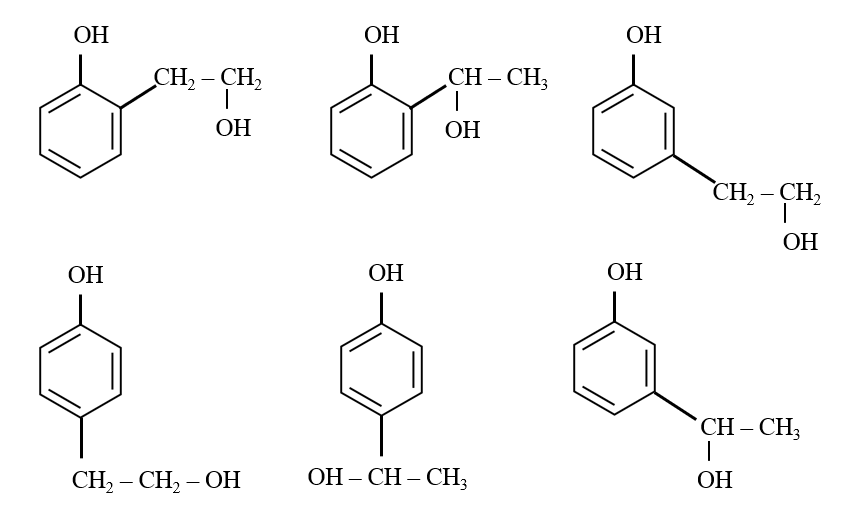Chất hữu cơ T có công thức phân tử C8H10O2 (chứa vòng thơm). Biết T tác dụng với Na tỉ lệ 1 : 2; với NaOH tỉ lệ 1 : 1. T có tham gia phản ứng tách nước với xúc tác H2SO4 đặc, nhiệt độ thích hợp. Số công thức cấu tạo thỏa mãn của X là