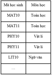 Hãy viết câu truy vấn SQL tạo lập bảng Danh sách môn học ở bảng dưới đây. Biết rằng Mã