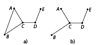 Xét các đồ thị cho trong hình sau:a) Liệt kê hai đường đi từ A đến E trong mỗi đồ thị.b)
