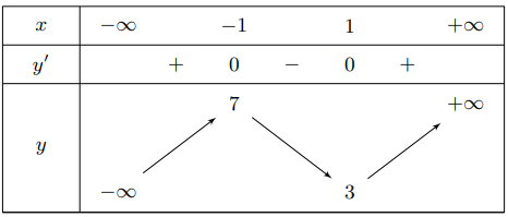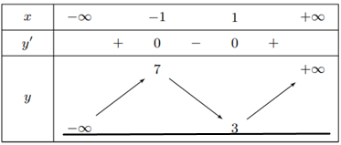 Cho hàm số \(y = f\left( x \right)\) xác định trên \(\mathbb{R}\) và có bảng biến thiên như hình vẽ