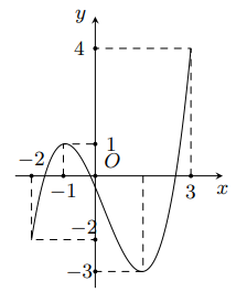 Cho hàm số \(y = f\left( x \right)\) có đồ thị trên đoạn \(\left[ { - 2;3} \right]\) là đường cong