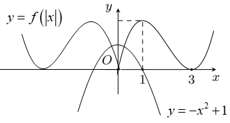 Số nghiệm \(f\left( {\left| x \right|} \right) + {x^2} - 1 = 0\) là số giao điểm của đồ thị hàm số \(y = f\left( {\left| x \right|} \right)\) và \(y = - {x^2} + 1\)