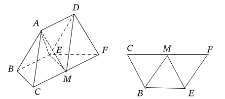 Cho khối đa diện như trong hình vẽ. Biết khối đa diện có hai mặt là các tam giác đều cạnh 1