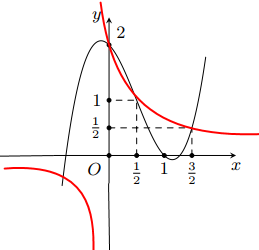 Đưa hàm số \(\left( {2t + 1} \right)f\left( t \right) - 2 = 0 \Leftrightarrow f\left( t \right) = \dfrac{2}{{2t + 1}}\) và vẽ trên đồ thị hàm số.