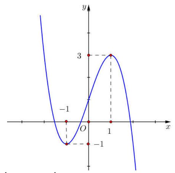 Cho hàm số \(y = a{x^3} + b{x^2} + cx + d\left( {a,b,c,d \in \mathbb{R}} \right)\) có đồ thị là đường cong trong hình bên.