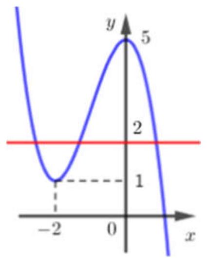 Cho hàm số bậc ba \(y = f\left( x \right)\) có đồ thị là đường cong trong hình bên. Số nghiệm thực của phương trình \(f\left( x \right) = 2\) là