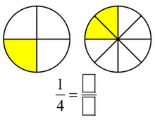Quan sát hình vẽ, nêu phân số thích hợp.
