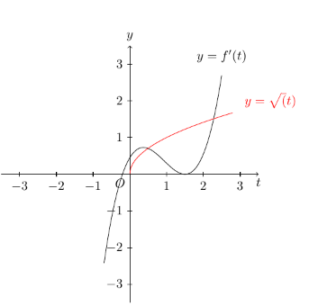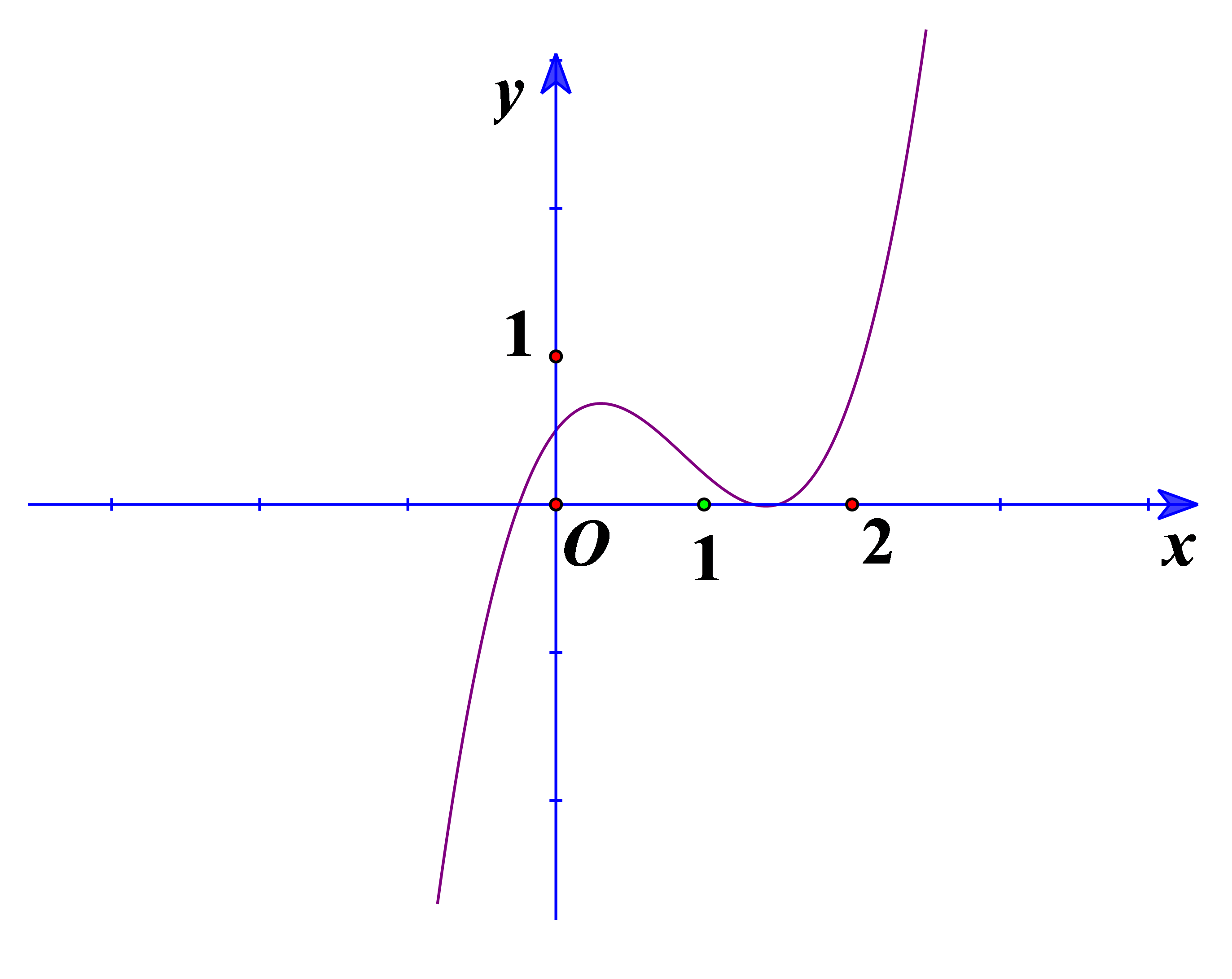 Cho hàm số \(y = f\left( x \right)\)có đạo hàm liên tục trên \(\mathbb{R}\). Biết hàm số\(y = f'\left( x \right)\) có đồ thị như hình vẽ bên dưới. Tìm số điểm cực trị của hàm số \(g\left( x \right) = f\left( {{x^2}} \right) - \dfrac{2}{3}{\left| x \right|^3}\).