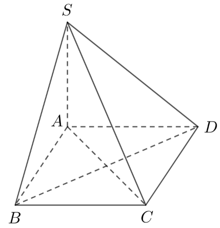Cho hình chóp tứ giác \(S.ABCD \)có đáy \(ABCD \) là hình vuông cạnh \(a\sqrt 3 \), cạnh bên \(SA \) vuông góc với mặt phẳng đáy và \(SA = a\sqrt 2 \). Tính thể tích \(V\)của khối chóp \(S.ABCD \)