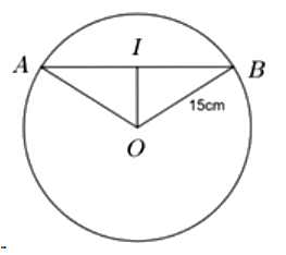 Cho đường tròn \(\left( {O;15cm} \right)\), dây \(AB = 24cm\). Khoảng cách từ \(O\) đến dây \(AB\)
