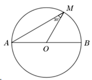 Trong hình bên, biết \(\angle AMO = 30^\circ \). Số đo \(\angle MOB\)
