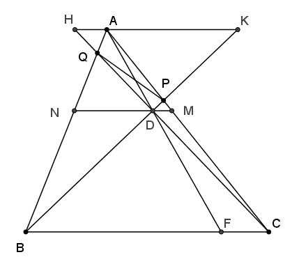 Qua A kẻ đường thẳng song song với BC, cắt BP tại K, cắt CQ tại H