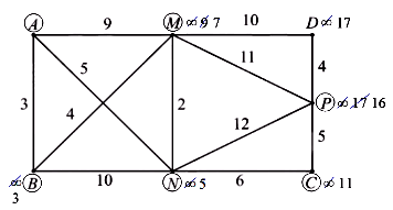Tìm đường đi ngắn nhất từ đỉnh A đến P trong đồ thị có trọng số ở hình