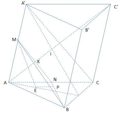 ; cạnh bên AA'= 2a, biết A' cách đều các đỉnh A, B, C. Gọi M, N lần lượt là trung điểm của AA', AC. Tính thể tích khối chóp C'MNB và khoảng cách từ C' đến mặt phẳng (MNB).
