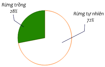 Biểu đồ hình quạt tròn biểu diễn tỉ lệ phần trăm diện tích các loại rừng (rì̀ng tụ
