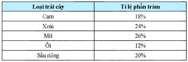 Bảng thống kê dưới đây cho biết tỉ lệ mỗi loại trái cây bán được của một cửa