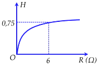 Mắc một biến trở R vào hai cực của một nguồn điện một chiều có suất điện động \(\xi \)và điện trở trong r. Đồ thị biểu diễn hiệu suất H của nguồn điện theo điện trở của biến trở R như hình vẽ. Điện trở trong của nguồn điện có giá trị bằng