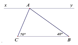Cho hình vẽ. Biết \(xy//BC,\angle ABC = {40^ \circ }\) và \(\angle ACB = {70^ \circ}\).