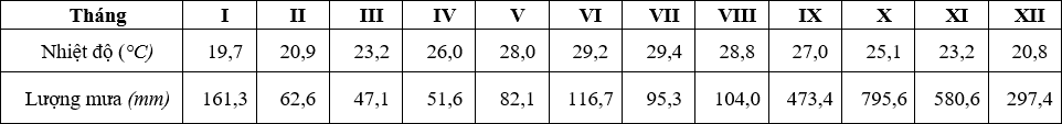 Cho bảng số liệu:NHIỆT ĐỘ VÀ LƯỢNG MƯA TRUNG BÌNH THÁNG CỦA HUẾ(Nguồn: Sách giáo khoa Địa