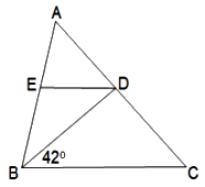 Cho tam giác \({\rm{ABC}}\) có tia phân giác của góc \({\rm{ABC}}\) cắt cạnh \({\rm{AC}}\) tại điểm\({\rm{D}}\). Đường thẳng qua \({\rm{D}}\) song song với \({\rm{BC}}\) cắt cạnh \({\rm{AB}}\) tại \({\rm{E}}\). Biết \(\angle CBD = {42^ \circ }\), tính số đo của các góc của tam giác BED.