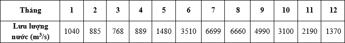 Cho bảng số liệu: Lưu lượng nước sông Hồng qua các tháng tại trạm Hà Nội (Nguồn: Atlat