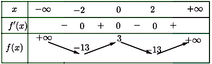 Tìm \({\rm{m}}\) để đường thẳng \(y = 4m\) cắt đồ thị hàm số \(y = {x^4} - 8{x^2} + 3\) tại bốn điểm phân biệt.