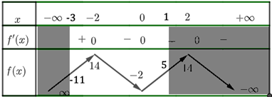 Tính đạo hàm lập bảng biến thiên trên đoạn \([ - 3;1]\)