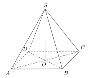 - Gọi \(O\) là tâm của hình vuông. Khi đó \(SO\) là đường cao