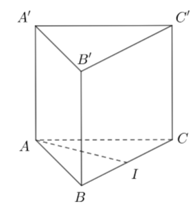 Cho hình lăng trụ đều \(ABC.A'B'C'\) có tất cả các cạnh bằng 2. Khoảng cách từ điểm A đến