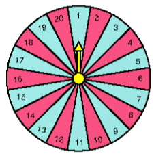 Một tấm bìa cứng hình tròn được chia thành 20 hình quạt như nhau, đánh số \(1;2; \ldots ;20\) và được gắn vào trục quay có mũi tên cố định ở tâm. Quay tấm bìa và quan sát xem mũi tên chỉ vào hình quạt nào khi tấm bìa dừng lại.