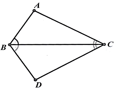 Cho hình bên. Biết \(\angle ABC = \angle DBC;\angle ACB = \angle DCB\). Chứng minh rằng \(\Delta {\rm{ABC}} = \Delta {\rm{DBC}}\).