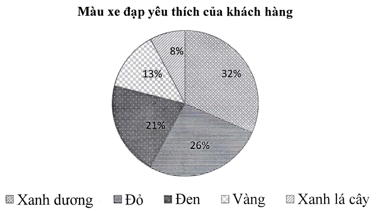 Một cửa háng bán xe đạp điều tra màu xe yêu thích của 300 khách hàng và thống kê lại kết quả trong biểu đồ hình quạt sau: