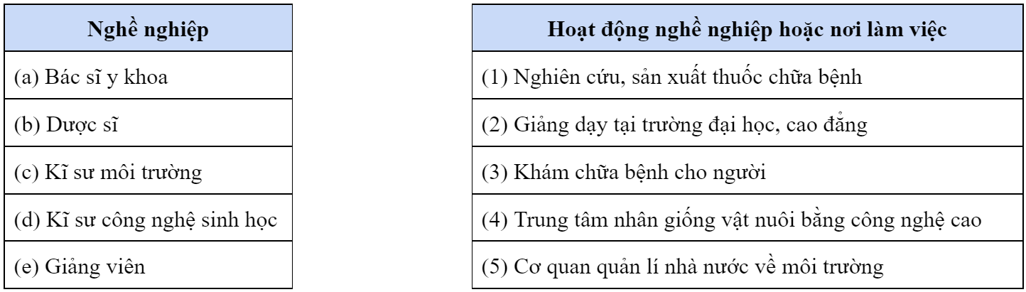 Vận dụng lý thuyết đã học về một số ngành nghề liên quan đến sinh học cơ thể.