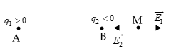 Cho 2 điện tích điểm \({q_1} = {8.10^{ - 8}}C\) và \({q_2} = - {2.10^{ - 8}}C\)đặt tại hai điểm A và B cách nhau một đoạn AB = 10 cm. Xác định vị trí của điểm M mà tại đó cường độ điện trường tổng hợp do hệ q1 và q2 gây ra bằng không ?