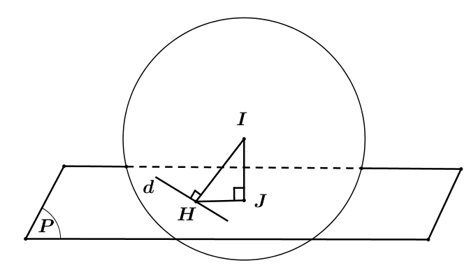 Gọi J, H lần lượt là hình chiếu vuông góc của I lên (P) và (d).